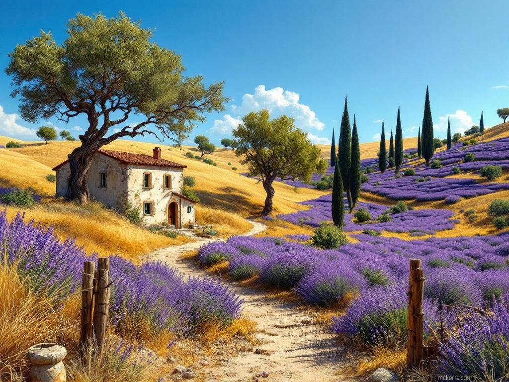 ↬ Le mas provençal à l'ombre des oliviers, et les champs de lavande sous le soleil ardent